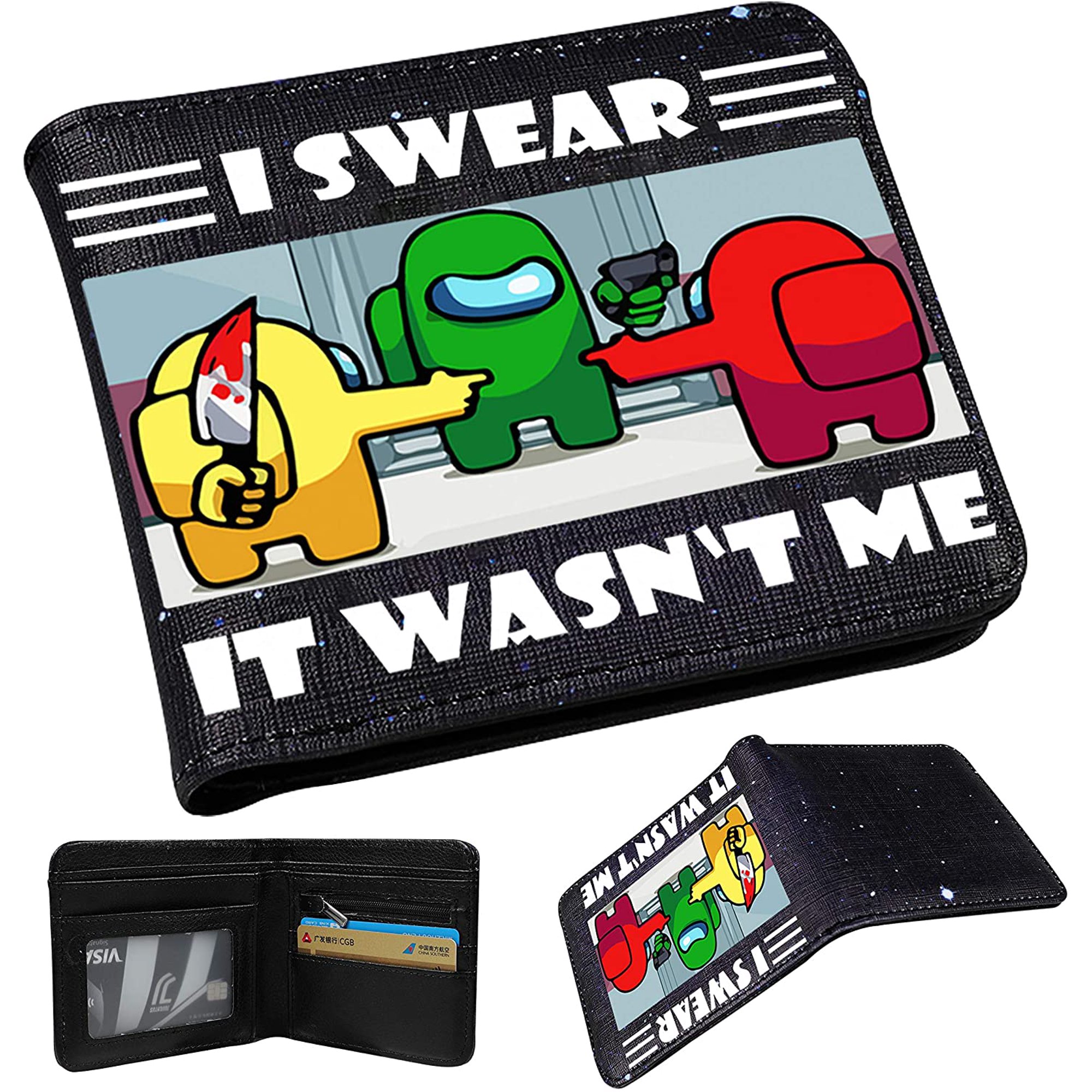 Bifold Wallet Purse Among Slim Minimalist Cute Kawaii Thin Cool Designer Beauty Aesthetic Funny For Us Men Women Kids Boys Girls Fun Cartoon Fashion Credit Card Wallet Purse Star I Swear